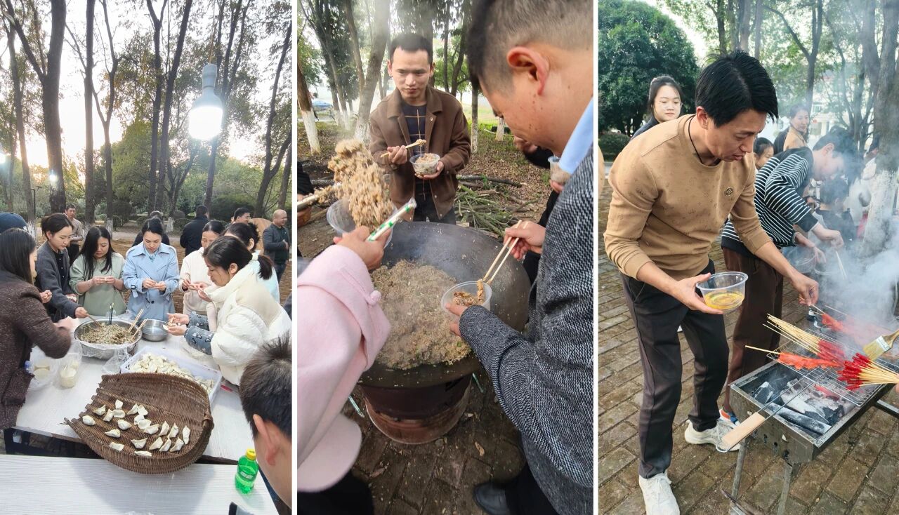 生日會的甜蜜還在延續(xù),豐盛的晚餐已準備就緒!接下來的時間里,大家有的在參與團體包餃子,體驗動手的樂趣;有的在燒烤區(qū)自由選材,享受自助燒烤的愜意;還有的在品嘗香噴噴的炒糯米飯。在享用美食的同時,繼續(xù)感受團隊相聚的歡樂。
